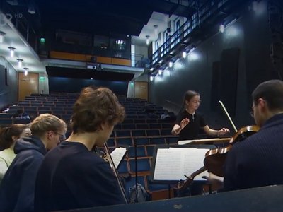 In Workshops erhalten die teilnehmenden Schülerinnen und Schüler eine Einführung in das Orchesterdirigieren und können dabei die Rolle der Dirigentin oder des Dirigenten vor dem Orchester übernehmen.
