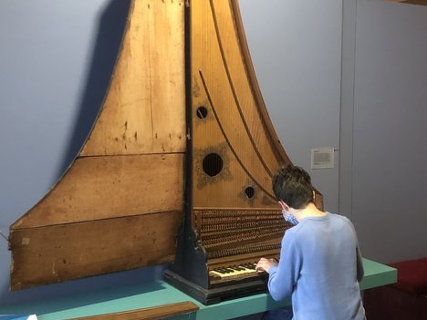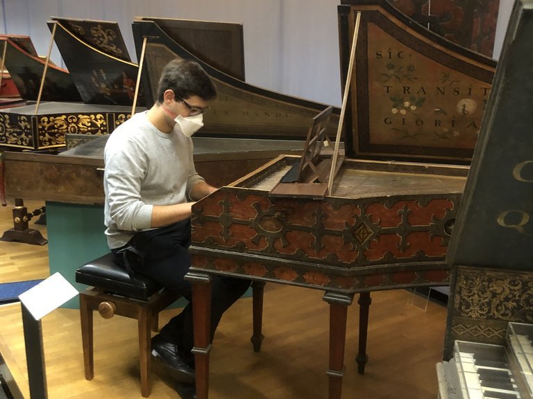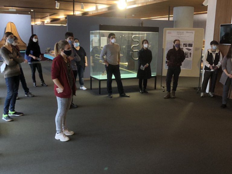 Unter Corona bedingten Sicherheitsvorkehrungen und der fachkundigen Führung des ehemaligen Restaurators der Instrumentensammlung, Klaus Martius, konnten sich die Studierenden selbst einen Einblick in das kulturelle Erbe des europäischen Musikinstrumentenbaus zwischen dem 16. bis zum Ende des 18. Jahrhundert verschaffen. Darüber hinaus konnten nicht nur klangliche Eindrücke, sondern auch praktische Erfahrungen, gerade was die Reichhaltigkeit an historischen Tasteninstrumenten angeht, gesammelt werden.