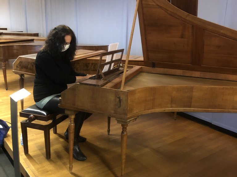 Mehrere Instrumente wurden von den Konservatoren für diesen Anlass spielbereit gemacht. Kostbare Cembali wie das 1637 gefertigte Instrument von Andreas Ruckers, ein anonymes Klaviziterium aus dem Jahr 1620, aber auch der Hammerflügel von Johann Andreas Stein von 1788 konnten von den Studierenden der Cembaloklasse ausprobiert werden.