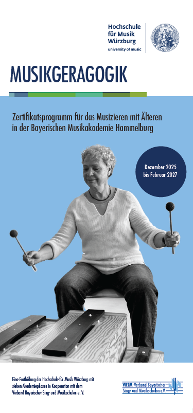 Das Zertifikatsprogramm Musikgeragogik der Hochschule für Musik Würzburg ist zertifiziert und wird in Kooperation mit dem Verband Bayerischer Sing- und Musikschulen e. V. durchgeführt.